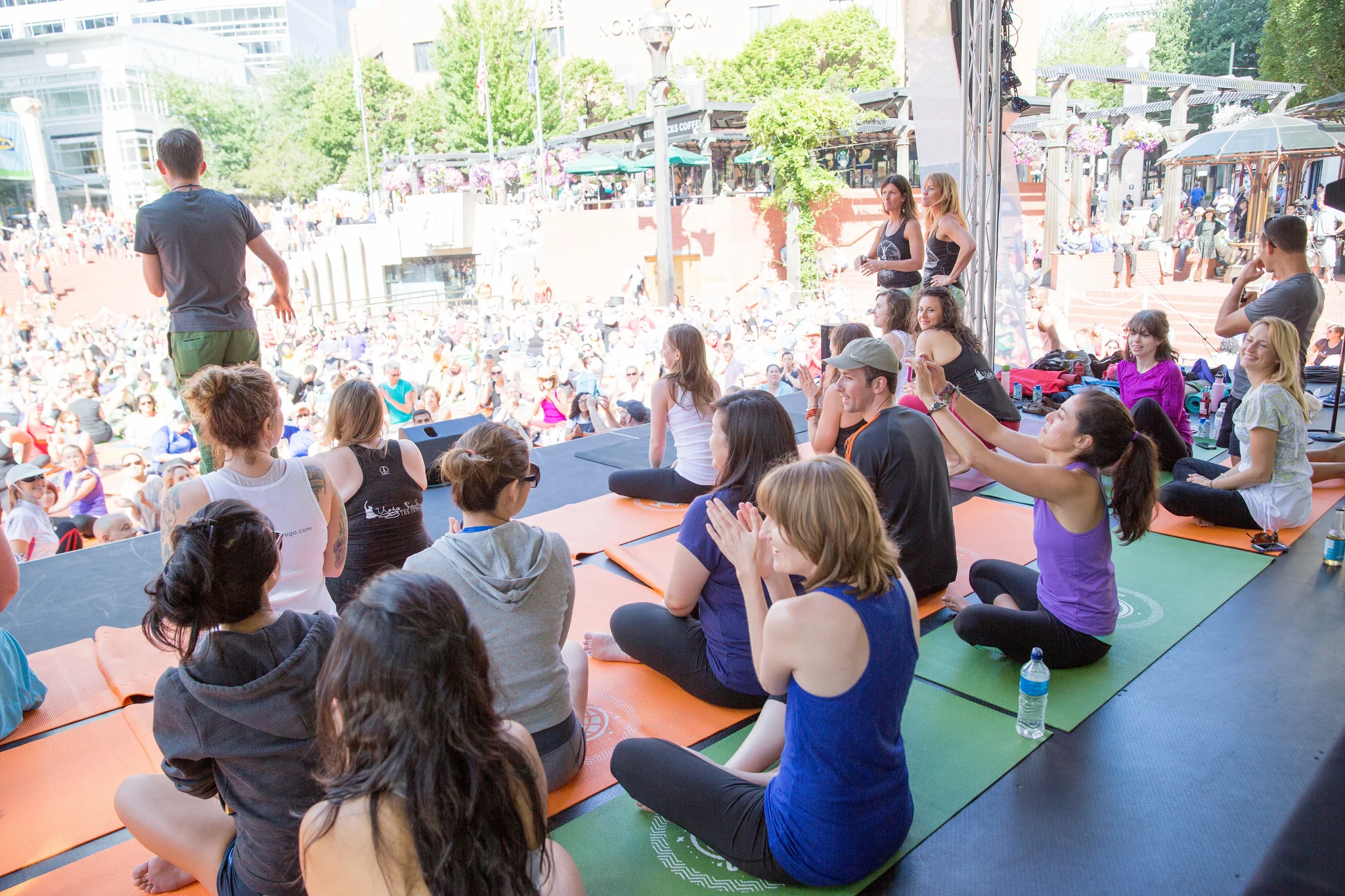 When I arrived and got in line for the Great Namaste, an attempt (a successful one!) to break the world record for the longest yoga chain, I was asked if I'd like to go on stage for the event.
